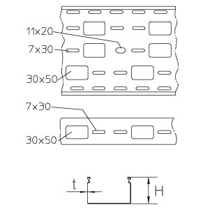 Cable installation tray with big side and bottom perforation for leading cables out, head shape suitable for positive locking covers, certified including electrical conductivity according to DIN EN 61537