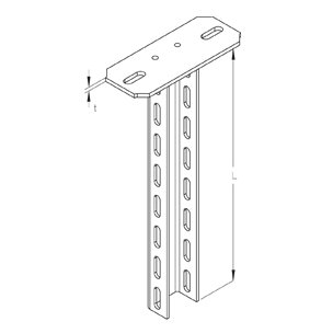 Ceiling bracket support heavy building class, U-profile 60x40x4 mm, continuously three-way perforated, with welded head plate (material thickness t), certified according to DIN EN 61537