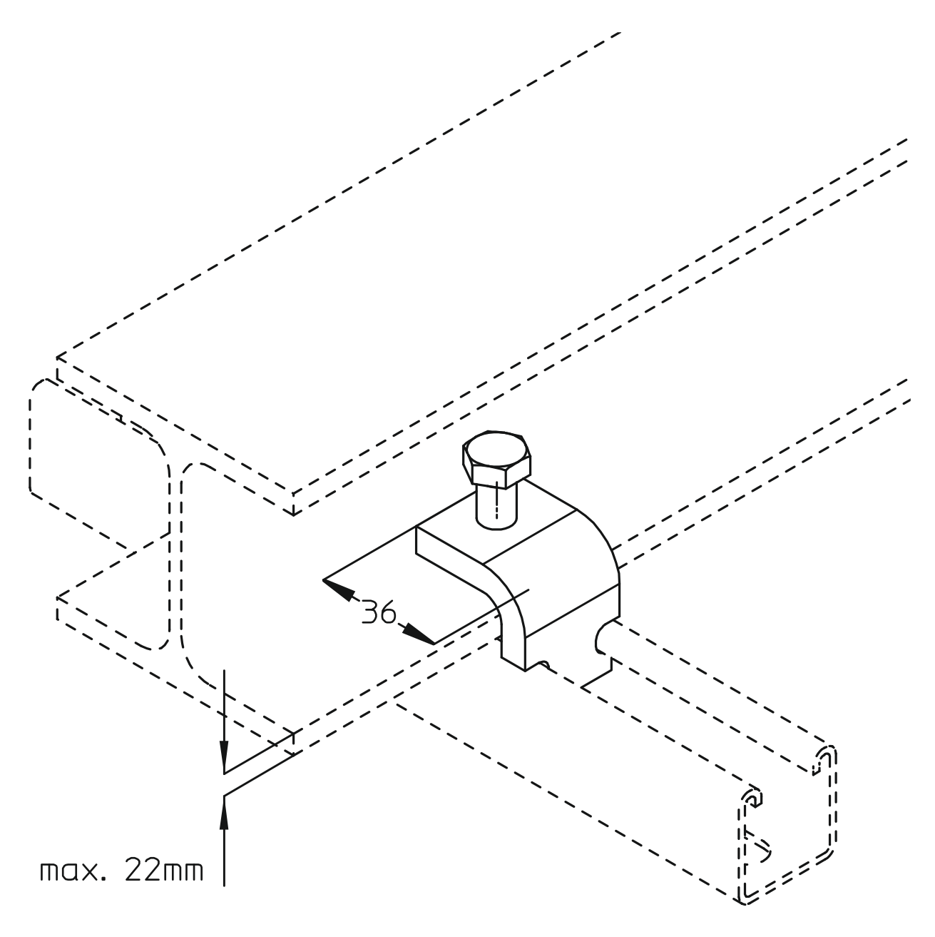 Zacisk montażowy AVSKH - umożliwia montaż profili: A 41, KHA 41, KHAL 41, KHA 42, KHA 82 do poziomych belek stalowych.