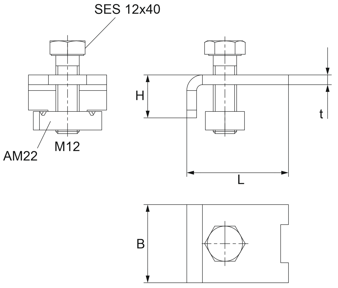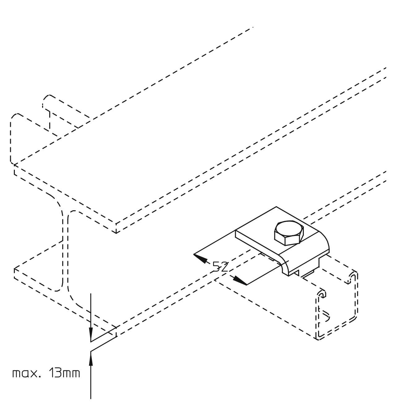 Zacisk montażowy AVSKH - umożliwia montaż profili: A 41, KHA 41, KHAL 41, KHA 42, KHA 82 do poziomych belek stalowych.