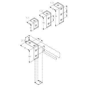 Corner connector 90 ° 1-1, 1-2, 1-3 or 2-2 hole