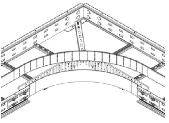Przegroda elastyczna samonośnej drabinki / korytka kablowego, wyposażona w elementy montażowe.