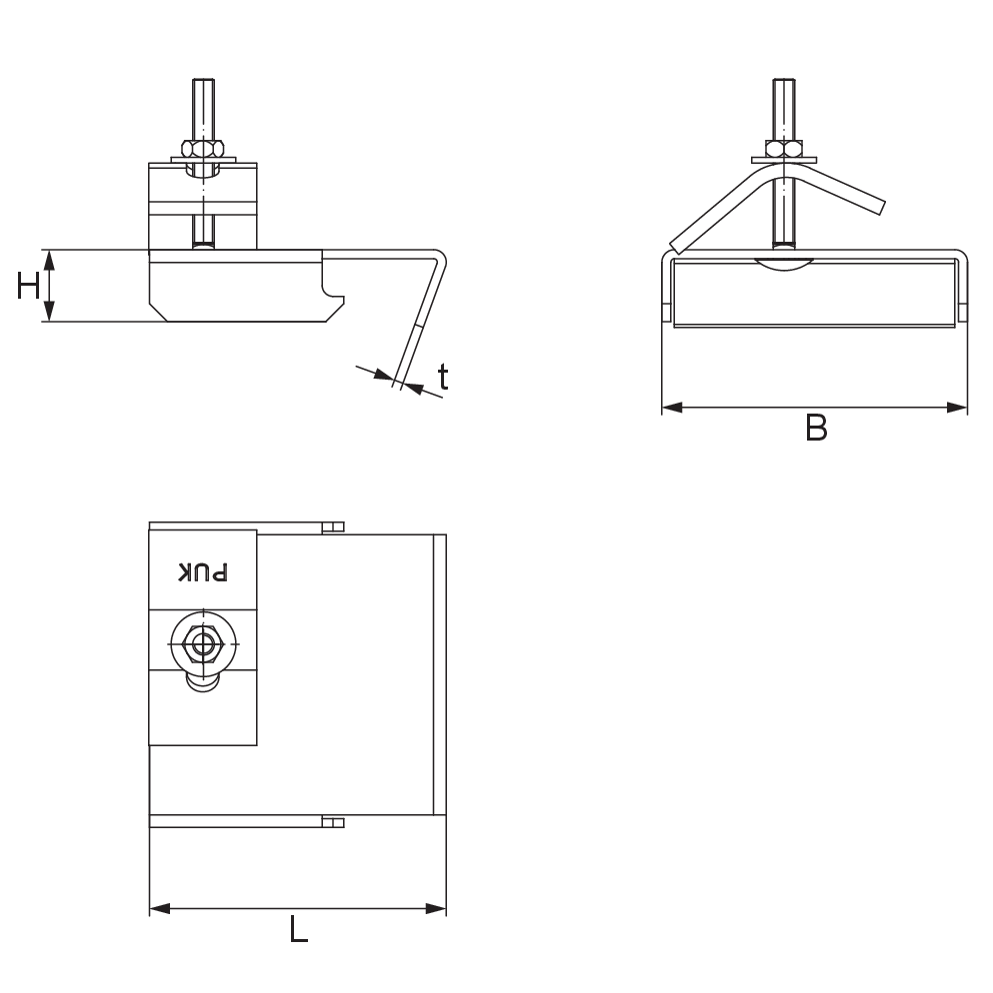 Łącznik górny drabinki / korytka samonośnego umożliwia połączeni dwóch drabinek / korytek kablowych samonośnych z przesunięciem poziomów. Łącznik pozwala na wykonanie odejścia bocznego lub skrzyżowania bez konieczności wycinania burt bocznych w drabince / korytku. Drabinka / korytko montowane jest za pomocą załączonych w komplecie łap mocujących SKLL oraz FRS, US i SEM.