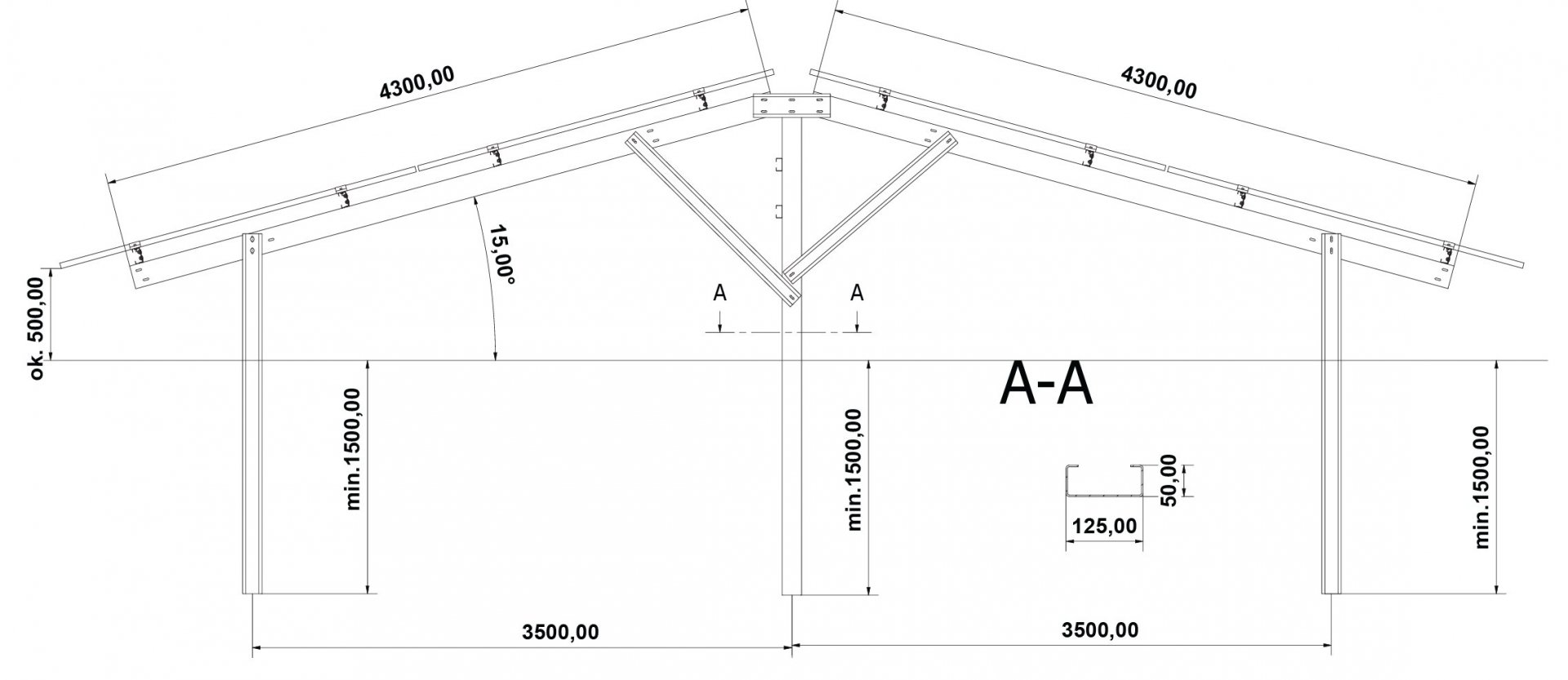• Mocowanie paneli / Modules mounting: klemy aluminium 6060 / clamps aluminium 6060 śruby, nakrętki podkładki ASTM 304 / screws, nuts, washers ASTM 304