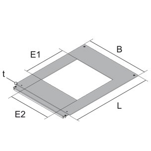 Assembly cover with square opening made of sendzimir hot-dip galvanised steel sheet. Can be used instead of a dummy cover to accommodate a triple installation unit. Designed for office traffic loads.