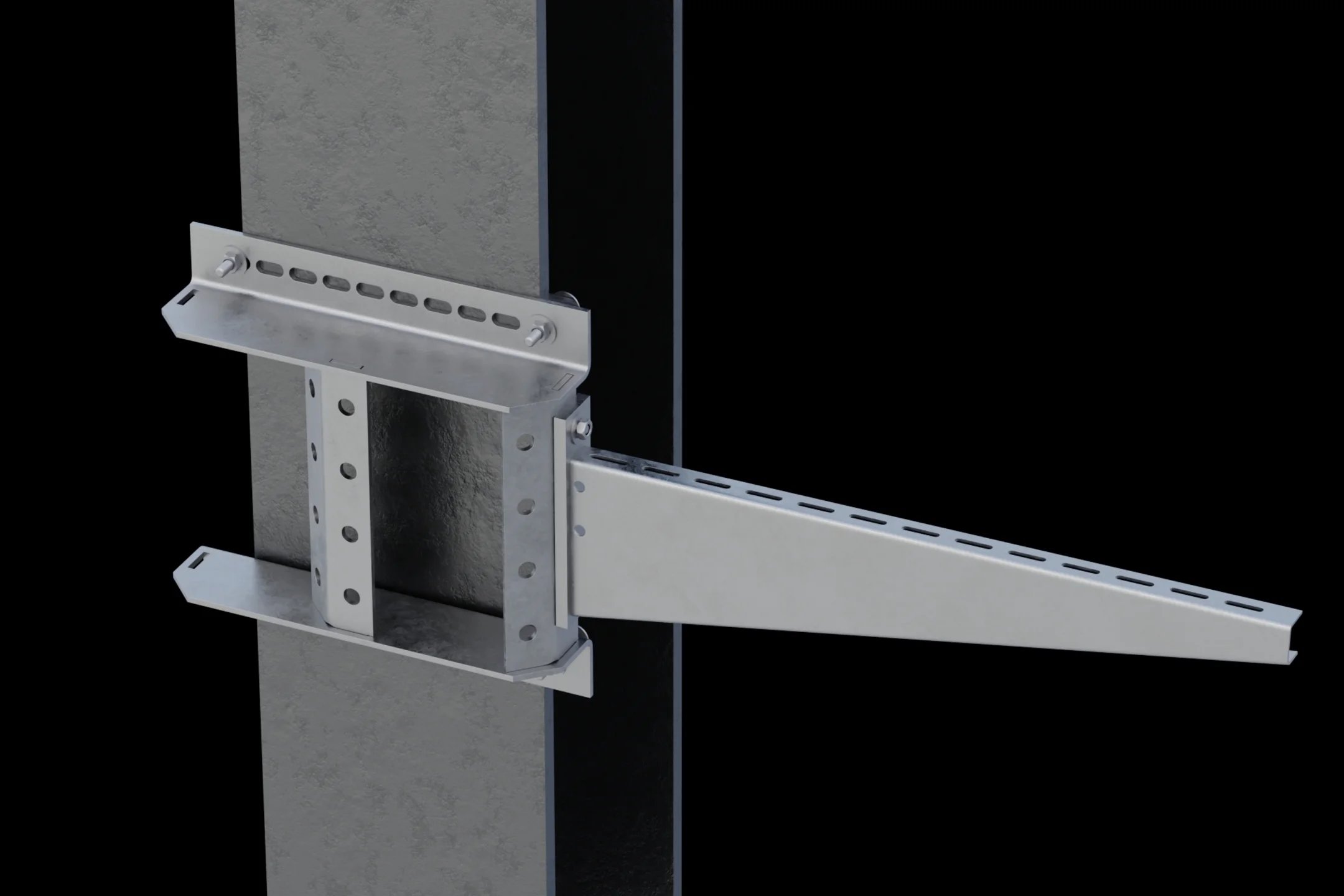 W halach ze stropami z blachy trapezowej, podwieszenie trasy kablowej pod sufitem często nie jest możliwe – konieczne są zatem alternatywne rozwiązania nośne. Dzięki nowemu adapterowi wspornika KBEW, półki KW, KWMS i KWS można teraz instalować bezpośrednio do belek betonowych. Wytrzymalsza wersja KBEWS nadaje się nawet do wspornika KWSS przeznaczonego do tras kablowych o dużej rozpiętości pomiędzy punktami podparcia– dla obciążeń do 10 kN.