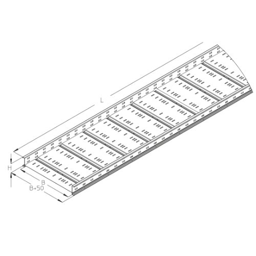 Samonośne korytko kablowa wyposażone w perforowane wzdłużnice. Korytko utrzymuje ciągłość potencjału zgodnie z DIN EN 61537. Do montażu przewidziano dedykowane łączniki.