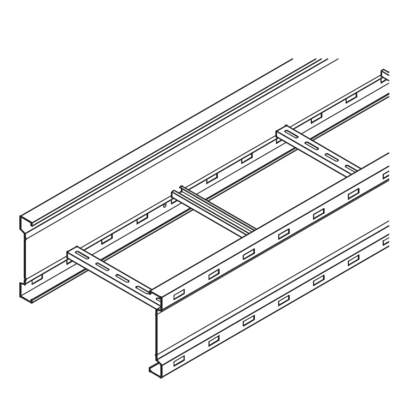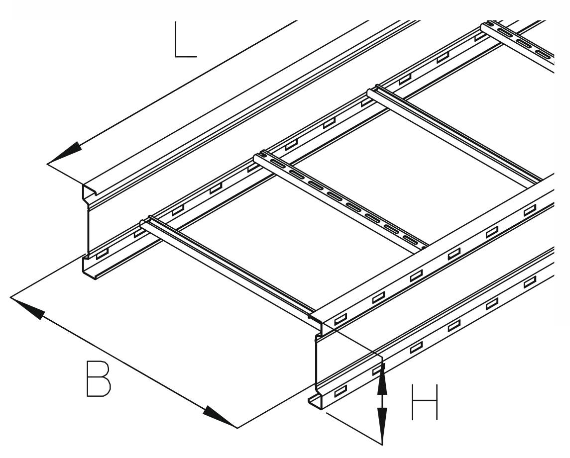 Samonośna drabinka kablowa wyposażona w perforowane wzdłużnice oraz spawane perforowane szczeble o profilu „C”. Drabinka utrzymuje ciągłość potencjału zgodnie z DIN EN 61537.