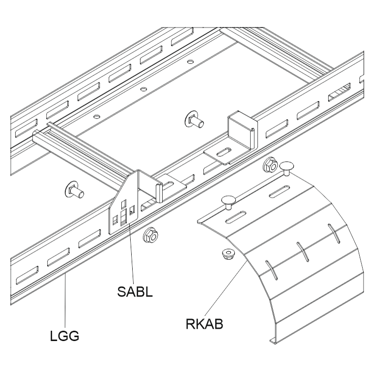 Uchwyt montażowy zejścia korytka kablowego SABL umożliwia wykonanie płynnego zejścia kablowego z zachowaniem wymaganego kąta gięcia kabli, co wpływa na zmniejszenie naprężeń. Montaż odbywa się poprzez przykręcenie uchwytów do burty bocznej / wzdłużniicy drabinki kablowej. Rozstaw uchwytów należy dopasować odpowiednio do szerokości zejścia RKAB. Produkt dostępny jest w różnorodnych wersjach zabezpieczeń antykorozyjnych, gwarantując jego zastosowanie w szerokim zakresie.