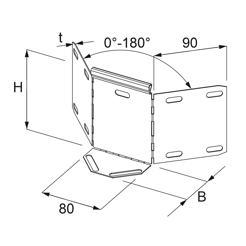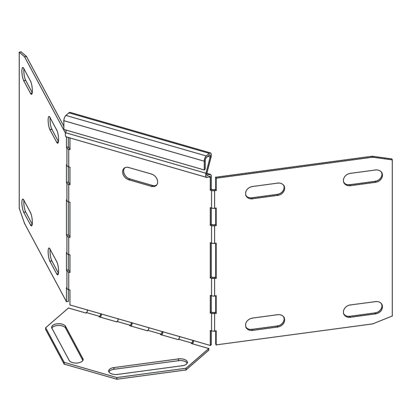 Rogowy element korytka do dobudowania z możliwością regulacji kąta, umożliwia wykonanie poziomej zmany kierunku przebiegu trasy korytka kablowego według indywidualnej potrzeby. W miejscu montażu elementu, należy usunąć (wyciąć) burtę korytka kablowego postępując zgodnie z instrukcją montażu. Elementy rogowe regulowane RAEV wsuwane są do korytka, a nastrępnie przykręcane. W miejscu zmiany przebiegu trasy kablowej, można zastosować blachę dolną VB zmniejszając ryzyko uszkodzenia izolacji kabli. Element rogowy RAEV 110 przeznaczony jest do montażu w korytkach o wysokości bocznej 110 mm. Element dostarczany jest jako płaski (bez zagięcia). Wymagany kąt uzyskuje się poprzez odpowiednie zagięcie elementów łączeniowych. Produkt dostępny jest w różnorodnych wersjach zabezpieczeń antykorozyjnych, gwarantując jego zastosowanie w szerokim zakresie.
