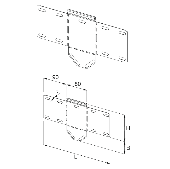 Rogowy element korytka do dobudowania, regulowany, wysokość=110 mm.