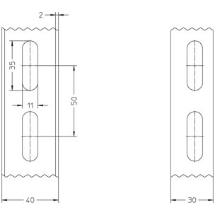 Bracket support, U-profile 40x30x2 mm, continuously three-way perforated.
