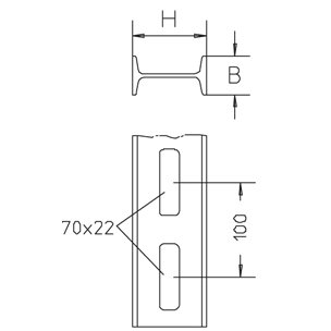 Bracket support with continuously elongated hole perforation in bars, for brackets type KT, for fastening directly to wall/ceiling with BL 7/BGI
