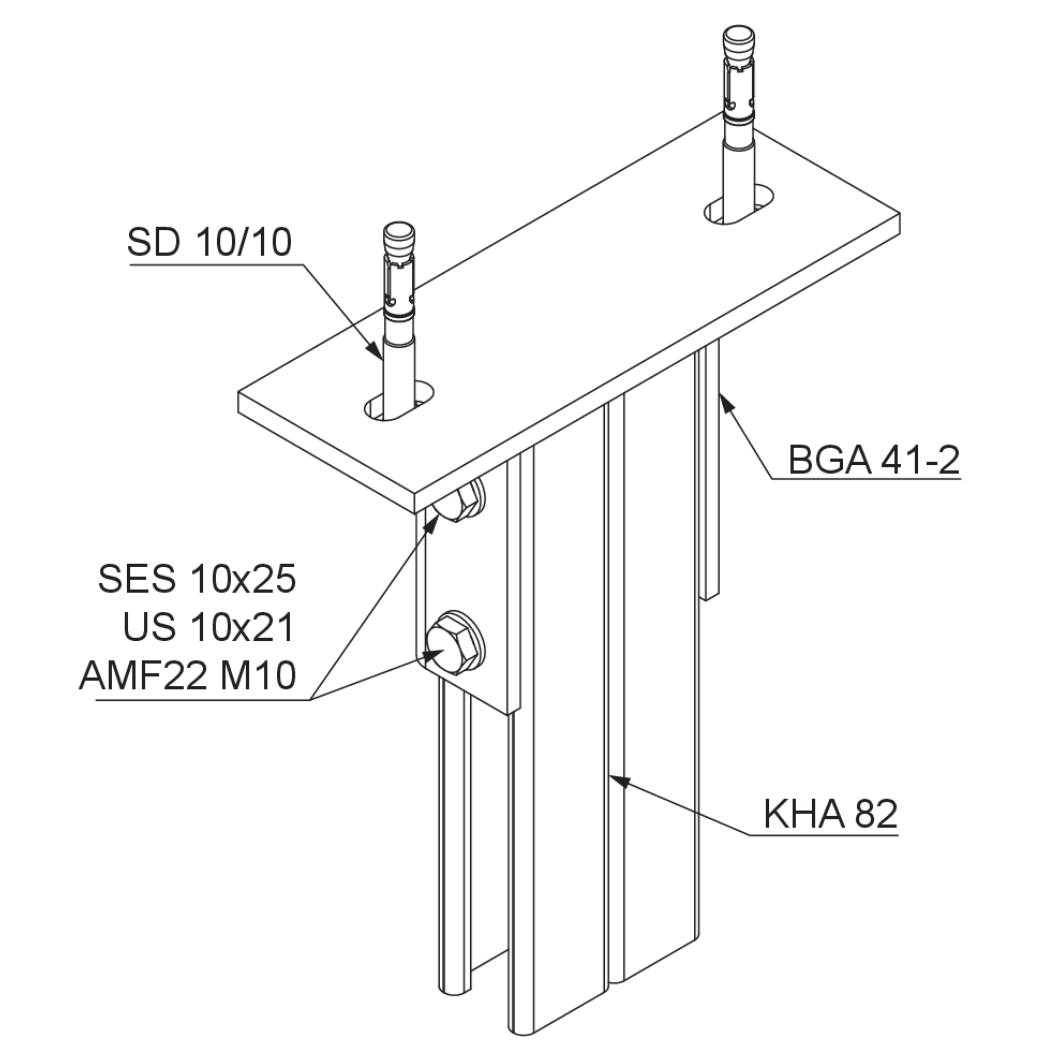 Head plate for mounting of two bracket supports profile KHA 41 to ceiling