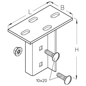 Head plate for fastening profile U 50 bracket supports to ceiling, certified according to DIN 4102-12