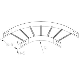 Wide-span bend 90º for horizontal change of direction, with integrated connectors