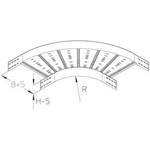 Wide-span cable tray bend 90º for vertical change of direction with integrated connectors