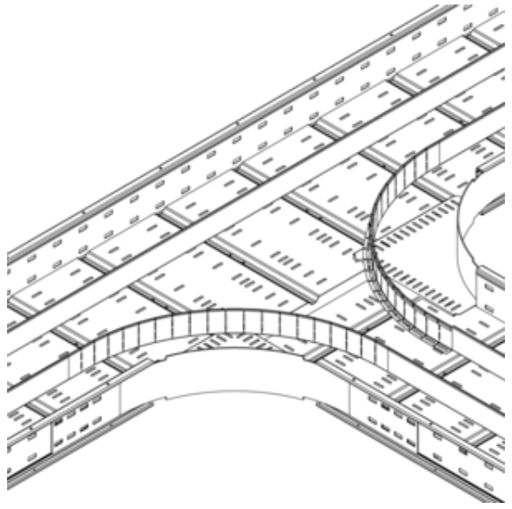 Przegroda elastyczna samonośnej drabinki / korytka kablowego, wyposażona w elementy montażowe.
