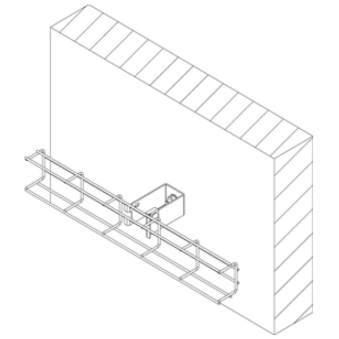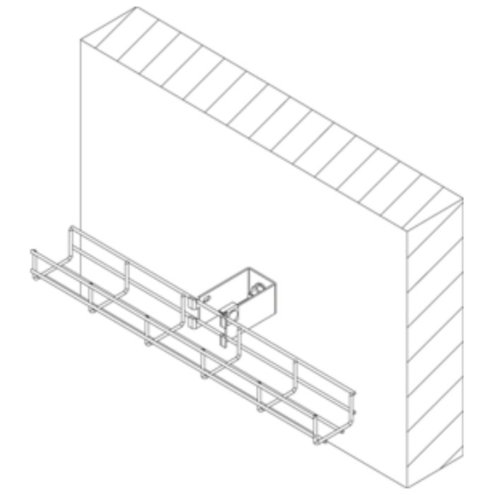 Spacer bar for horizontal wall mounting of wire mesh cable trays.