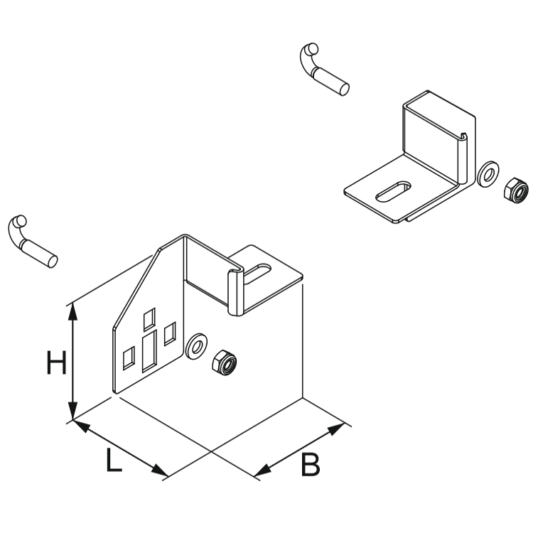 Uchwyt montażowy zejścia korytka siatkowego SABG umożliwia wykonanie płynnego zejścia kablowego z zachowaniem wymaganego kąta gięcia kabli, co wpływa na zmniejszenie naprężeń. Montaż odbywa się poprzez przykręcenie uchwytów do prętów bocznych korytka siatkowego. Rozstaw uchwytów należy dopasować odpowiednio do szerokości zejścia korytka RKAB. Produkt dostępny jest w różnorodnych wersjach zabezpieczeń antykorozyjnych, gwarantując jego zastosowanie w szerokim zakresie.