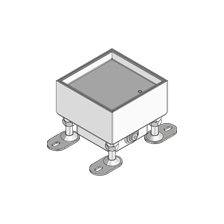 Quadrangular single outlet made of high-grade steel with a hem as retainer for one 45x45 mm device. As levellable cartridge installation frame with dummy cartridge, retainer box and rubber seal. For direct installation into screed or hollow floors. Suitable for wet-cleaned floors. For office working loads.