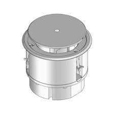 Round single-outlet made of plastic, equipped with an isolated ground receptacle and an empty space for data technology. With floor cover protection frame including a pivotable cover with cable outlet, mounting box with strain relief and a set of claws. For the installation into screed and raised floor/hollow floor openings. Equipped with a isolated ground receptacle of 45x45mm and a RJ45 dummy data cover 22.5x45 mm. Suitable for rooms with dry-cleaned floor covers. Designed for office traffic lo