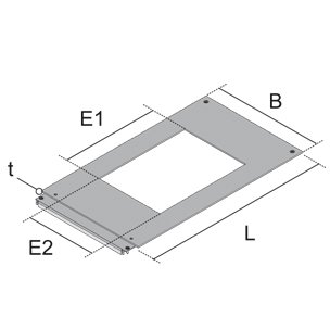 Assembly cover with square opening made of sendzimir hot-dip galvanised steel sheet. Can be used instead of a dummy cover to accommodate a double installation unit. Designed for office traffic loads.