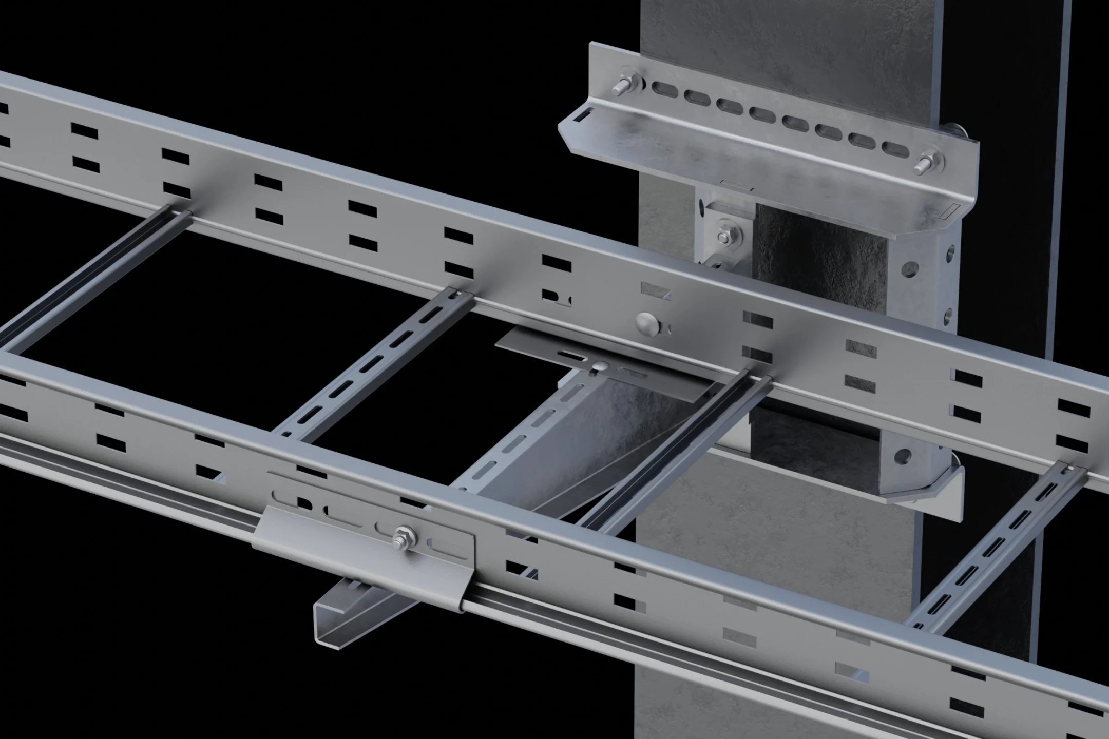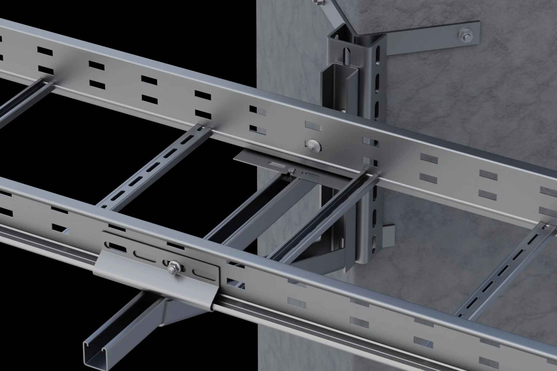 W halach ze stropami z blachy trapezowej, podwieszenie trasy kablowej pod sufitem często nie jest możliwe – konieczne są zatem alternatywne rozwiązania nośne. Dzięki nowemu adapterowi wspornika KBEW, półki KW, KWMS i KWS można teraz instalować bezpośrednio do belek betonowych. Wytrzymalsza wersja KBEWS nadaje się nawet do wspornika KWSS przeznaczonego do tras kablowych o dużej rozpiętości pomiędzy punktami podparcia– dla obciążeń do 10 kN.