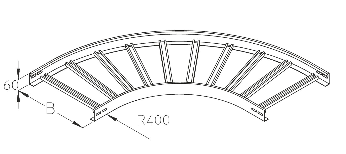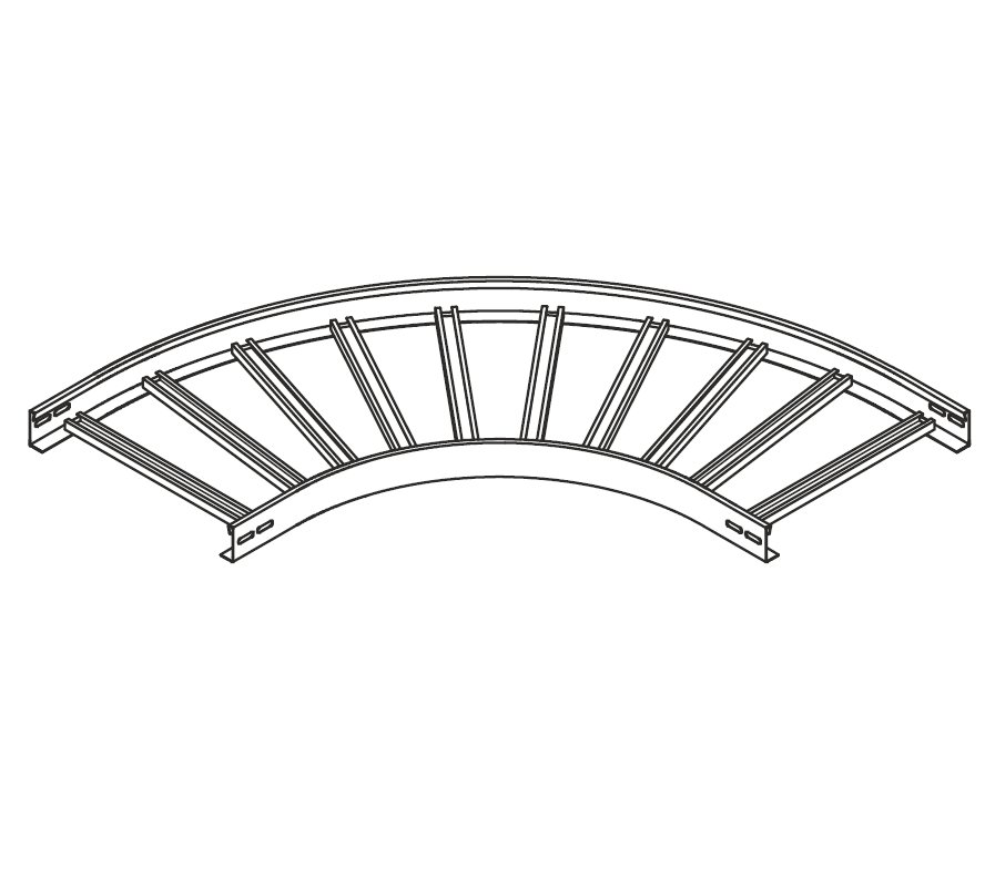 Łuk wewnętrzny drabinki kablowej 90 stopni umożliwiający zmianę kierunku trasy w poziomie.