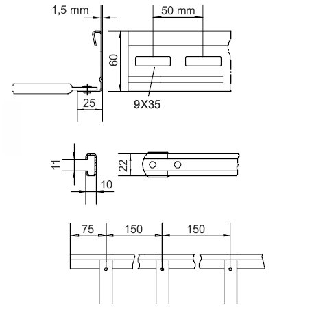 Drabinka kablowa wyposażona w perforowane wzdłużnice oraz nitowane szczeble. Szczeble wykonane są z profilu w kształcie litery „C”. Drabinka utrzymuje ciągłość potencjału zgodnie z DIN EN 61537.