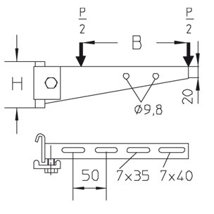 Wspornik poziomy, standardowy, przystosowany do montażu na wsporniku KDI lub dwuteowniku KHI (I 80). Produkt certyfikowany zgodnie z DIN EN 61357/VDE 0639.